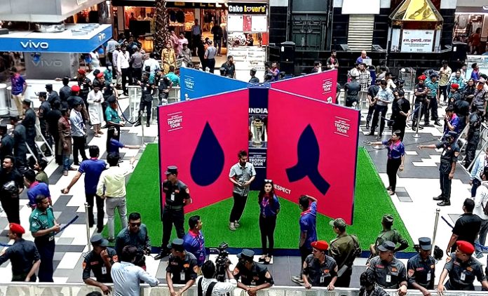 রাজধানীর কারওয়ানবাজারস্থ বসুন্ধরা সিটি শপিং কমপ্লেক্সে সকাল ১১টা থেকে শুরু হয়েছে আইসিসি পুরুষ বিশ্বকাপ ট্রফির প্রদর্শনী। বিশ্ব ভ্রমণের অংশ হিসেবে বিশ্বকাপ ট্রফির বাংলাদেশ ভ্রমণের শেষ দিন আজ বুধবার। শেষ দিনে সর্বসাধারণের জন্য উন্মুক্ত বিশ্বকাপের ট্রফিটি। নির্দিষ্ট দূরত্ব থেকে ছবি তোলার সুযোগ পেয়েছেন ভক্তরা। বসুন্ধরা সিটি শপিং কমপ্লেক্সে ট্রফিটি থাকবে রাত ৮টা পর্যন্ত।