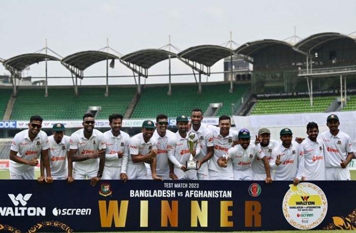 ঢাকা টেস্টে মিরপুরের হালকা ঘাসের উইকেটে চতুর্থ দিনে পেসারদের দাপটে ল-ভন্ড আফগানিস্তান শিবির। একদিন হাতে রেখে ৫৪৬ বিশাল ব্যবধানে জয় তুলে নিলো লিটন দাসের দল। ব্যাটারদের দারুণ নৈপুণ্য এবং বোলারদের দারুণ নিয়ন্ত্রিত বোলিংয়ের এতবড় জয়ের দেখা পেলো বাংলাদেশ দল।
